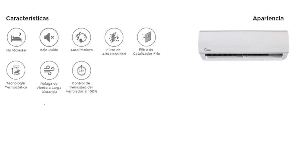 El aire acondicionado Midea Mini Split ON OFF 12000 BTU es una solución confiable y eficiente para climatizar espacios residenciales, brindando confort, bajo ruido y un ambiente más saludable para tu hogar.
